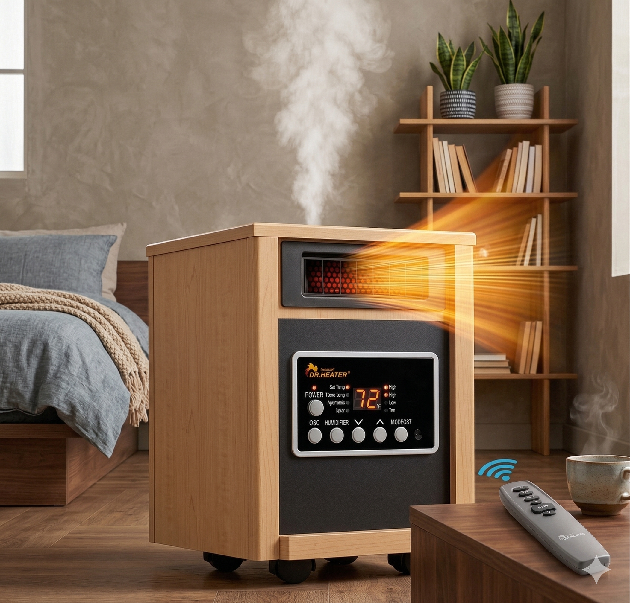 "El calefactor DR-998 nace para arropar el hogar con una calidez suave y atemporal. Su calor envolvente, la brisa reconfortante de su humidificador y su clásico acabado en madera convierten cada día de invierno en un momento para disfrutar con calma. Una pieza pensada para hogares donde el confort y el bienestar van de la mano."
